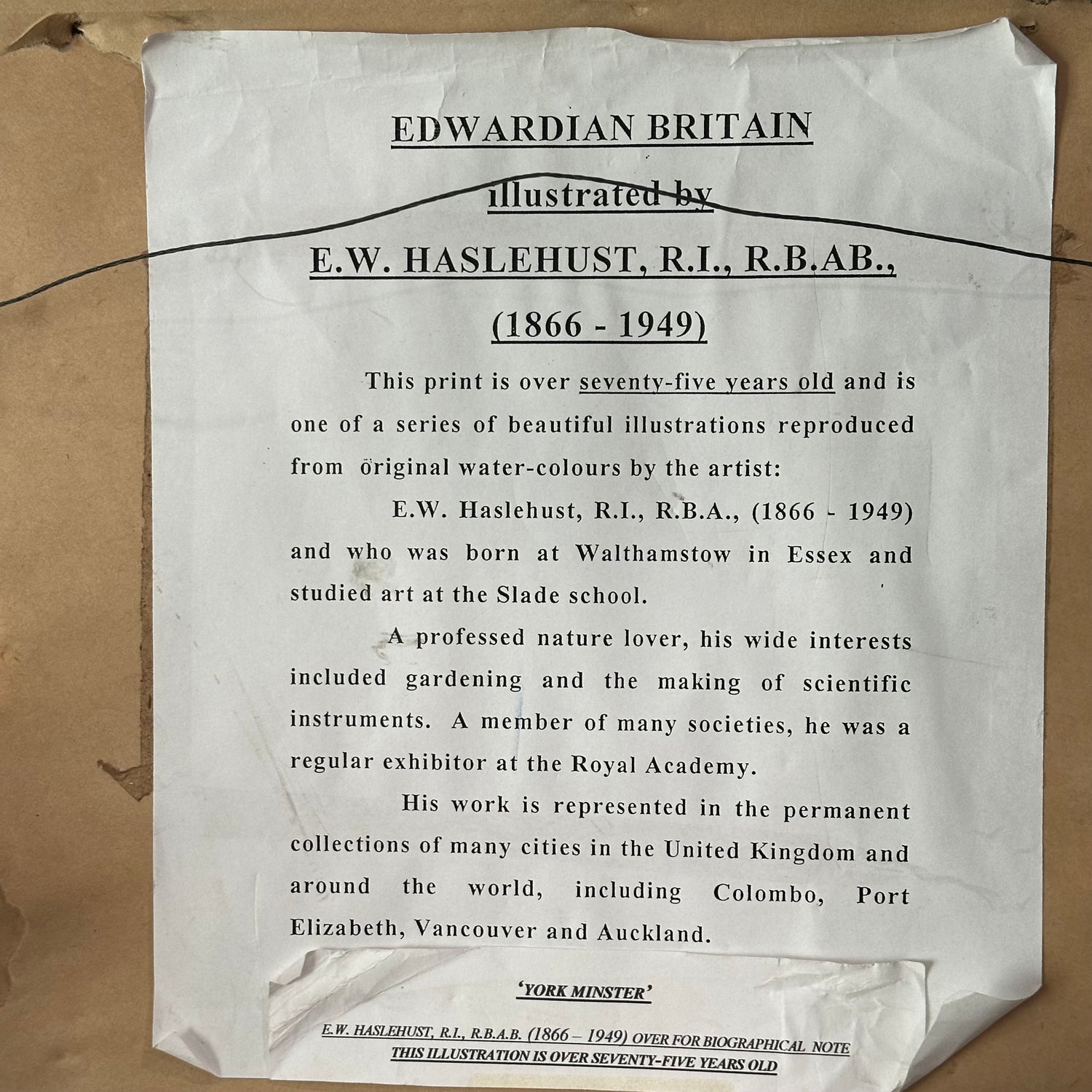 Vintage York Minster Print by EW Haslehust